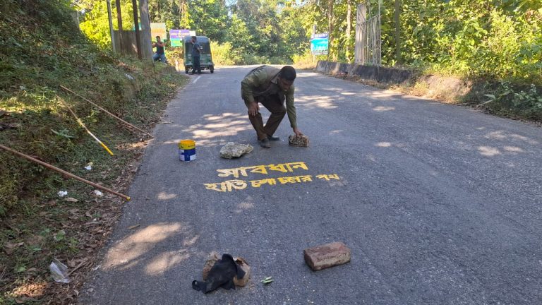 বন্য হাতির আক্রমণ হতে রক্ষা পেতে কাপ্তাই বন বিভাগের সতর্কতামূলক রোড মার্কিং