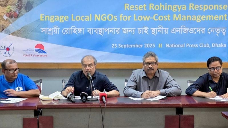 এ সময় কোস্ট ফাউন্ডশনের নির্বাহী পরিচালক রেজাউল করিম চৌধুরী বলেন, কক্সবাজার শহর থেকে রোহিঙ্গা ক্যাম্পে যাওয়া-আসা করতে অন্তত তিন ঘণ্টা সময় লাগে। সুতরাং কক্সবাজার শহরে বসে রোহিঙ্গাদের জন্য কাজ করার কোনো প্রয়োজন নেই। বড় এনজিও এবং আইএনজিওগুলো প্রকল্প পরিচালনা করলে খরচ অনেক বেশি হয়। অন্যদিকে, স্থানীয় এনজিওগুলো মাত্র ৪ দশমিক ৮ শতাংশ তহবিল পায়। অথচ তারা বড় ধরনের প্রকল্প খুব কম খরচে চালাতে পারে। সুতরাং রোহিঙ্গাদের সহায়তা কার্যক্রমে স্থানীয় এনজিওগুলোর প্রতি গুরুত্ব দেওয়া উচিত।