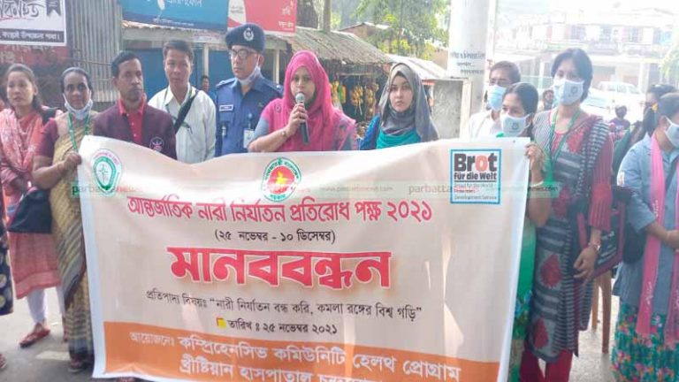 মানববন্ধনে টেকসই সামাজিক সেবা প্রদান প্রকল্প, কমিউনিটি হেলথ প্রোগামের স্বাস্থ্য কর্মী এবং বিভিন্ন উন্নয়ন সংস্হার সদস্যরা উপস্হিত ছিলেন।
