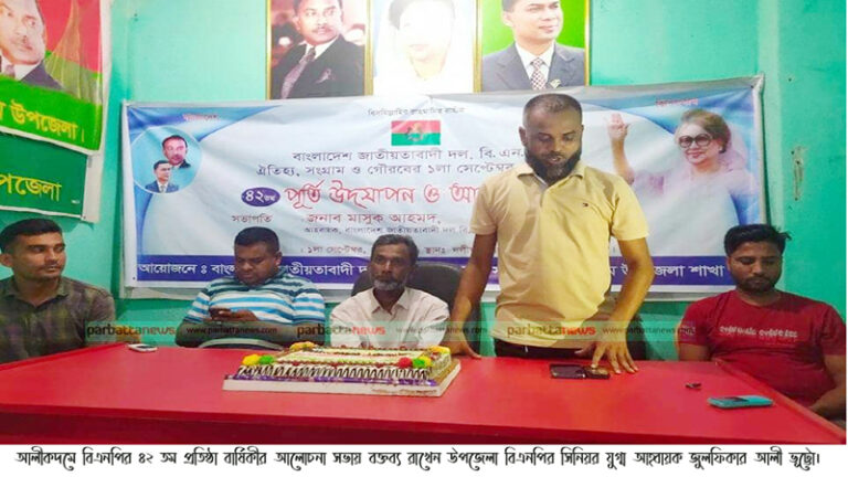 বাংলাদেশ জাতীয়তাবাদী দল-বিএনপি’র ৪২তম প্রতিষ্ঠাবার্ষিকী উদযাপন ও আলোচনা সভা অনুষ্ঠিত হয়েছে।