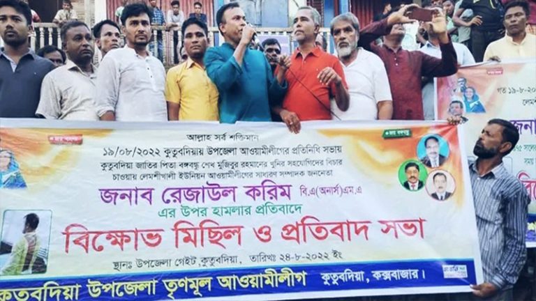 কক্সবাজার কুতুবদিয়া উপজেলা আওয়ামী লীগ সভাপতির বিরুদ্ধে লেমশীখালী ইউনিয়ন আওয়ামী লীগের সাধারণ সম্পাদক রেজাউল করিম রেজাকে মারধরের অভিযোগে বিক্ষোভ মিছিল ও প্রতিবাদ সভা করেছে কুতুবদিয়া আ.লীগের তৃণমূল নেতা-কর্মীরা।