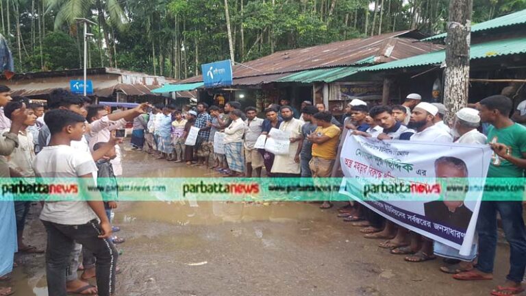 ইসলামাবাদ চেয়ারম্যান ও পুত্র কতৃক মেম্বার রাজ্জাককে হত্যা চেষ্টার ঘটনায় প্রতিবাদ সভা