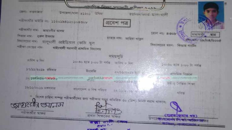 এদের মধ্যে জাহাঙ্গীর আলম পিতা-নুরুল ইসলাম, অধ্যায়নরত বিদ্যালয় বালুখালী আইডিয়াল কেজি, তার পিইসি রোল নং-৪৩০৮, উক্ত পরীক্ষার্থীর আইডি নাম্বার ১১২০১৯৪১২০১০৪৩০৮। তার বাড়ী দেখানো হয়েছে রাজাপালং ইউনিয়নের সিকদার বিল গ্রামে। স্থানীয় অভিভাবকদের প্রশ্ন হচ্ছে, রাজাপালং ইউনিয়নে সরকারি-বেসরকারি এত গুলো বিদ্যালয় থাকতে দীর্ঘ যানজটপূর্ণ এলাকা বালুখালী কেজি স্কুলে কেন তার অধ্যায়ন?