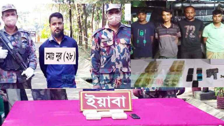 একই দিন কক্সবাজার-টেকনাফ মেরিন ড্রাইভ সড়কের রেজুখাল যৌথ চেকপোষ্টে কক্সবাজারগামী যাত্রিবাহি সিএনজিতে তল্লাশী চালিয়ে ১০ হাজার পিস ইয়াবাসহ মোঃ নুর (২৮) নামে একজনকে আটক করে। সে টেকনাফের নয়াপাড়া এলাকার মৃত হোসেনের ছেলে।