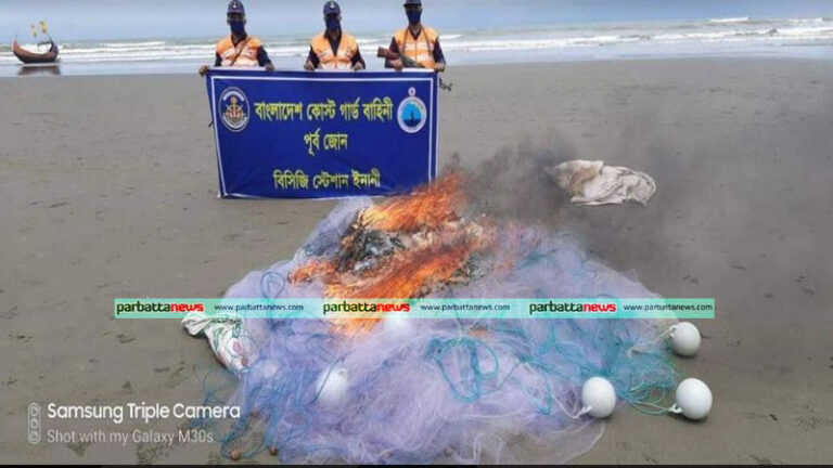 কক্সবাজারের উখিয়ার উপকূলীয় এলাকা ইনানীতে ৫০ হাজার মিটার কারেন্ট জাল জব্দ করেছে কোস্টগার্ড।