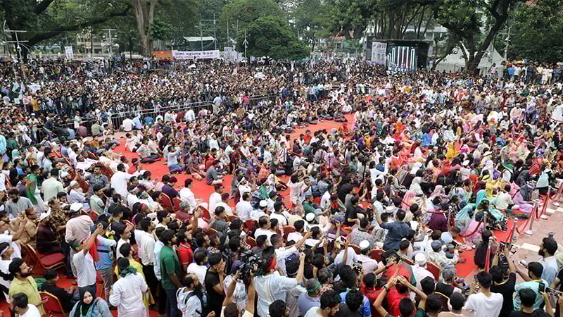 নাহিদ বলেন, গত বছর এই দিনে এই শহীদ মিনার থেকে আমরা ঘোষণা করেছিলাম ফ্যাসিবাদ ব্যবস্থা বিলোপের সেই ঐতিহাসিক এক দফা। ঐতিহাসিক এক দফা কোনো ব্যক্তি, দলের বা কোনো সংগঠনের পক্ষ থেকে ঘোষণা করা হয়নি।