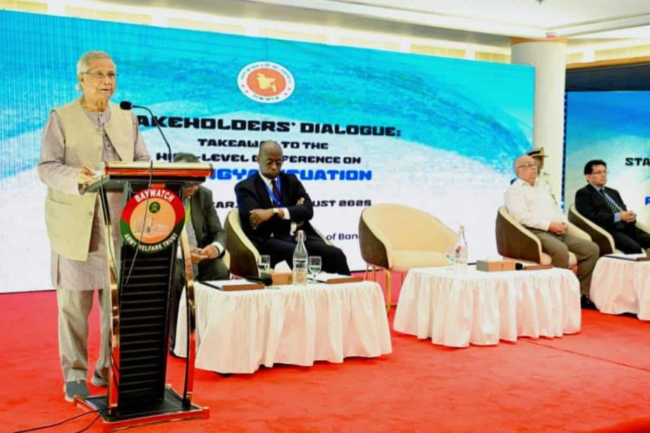 প্রধান উপদেষ্টা বলেন, রোহিঙ্গাদের জাতিগত নির্মূলের ভয়াবহ পরিকল্পনা বাস্তবায়ন থেকে সশস্ত্র ঘাতকদের থামানো আমাদের নৈতিক দায়িত্ব। সম্পদ ও সামর্থ্যের সীমাবদ্ধতা সত্ত্বেও ২০১৭ সালে এবং তারও আগে রোহিঙ্গাদের জীবন বাঁচাতে মানবিক কারণে বাংলাদেশ সীমান্ত খুলে দিয়েছিল। মিয়ানমার সরকার ও আরাকান আর্মিকে নিশ্চিত করতে হবে, যাতে আর কোনো রোহিঙ্গা বাংলাদেশে প্রবেশ না করে।