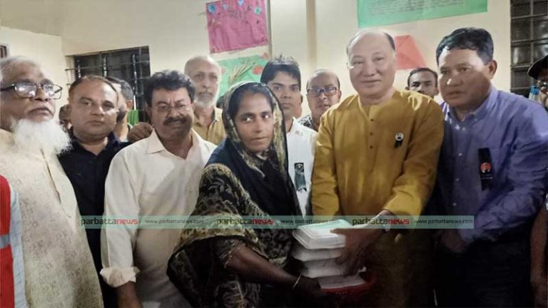 কাপ্তাইয়ে আশ্রয়কেন্দ্রে খাবার বিতরণ করলেন দীপংকর তালুকদার এমপি