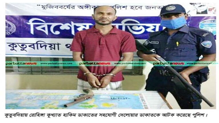 কুতুবদিয়ায় কুখ্যাত রোহিঙ্গা হাকিম ডাকাতের সহযোগী ডাকাত দেলোয়ারকে আটক করেছে পুলিশ।