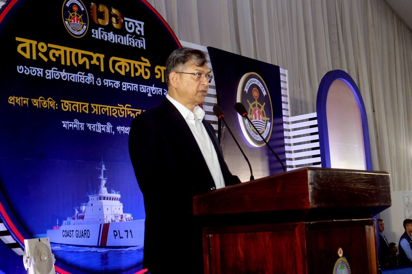 স্বরাষ্ট্রমন্ত্রী সালাহউদ্দিন আহমদ বলেছেন, দেশের সমুদ্র ও উপকূলীয় এলাকার নিরাপত্তা নিশ্চিত করতে বাংলাদেশ কোস্ট গার্ড আজ আস্থার প্রতীকে পরিণত হয়েছে। তিনি বলেন, এই বাহিনীকে একটি আধুনিক, শক্তিশালী ও যুগোপযোগী বাহিনী হিসেবে গড়ে তুলতে বর্তমান সরকার সব ধরনের পদক্ষেপ গ্রহণ করছে।