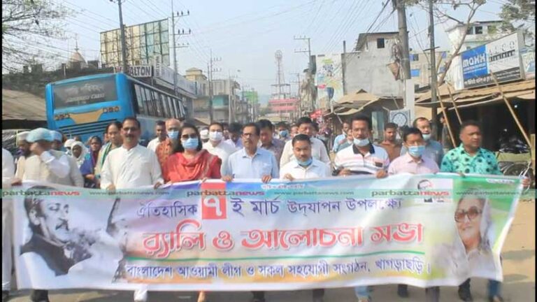 বঙ্গবন্ধুর স্মৃতি ভাস্কর্যে পুষ্পস্তবক অর্পণ, র্যালি ও আলোচনা সভার মাধ্যমে ঐতিহাসিক ৭ মার্চ পালন করেছে খাগড়াছড়ি জেলা আওয়ামী লীগ।