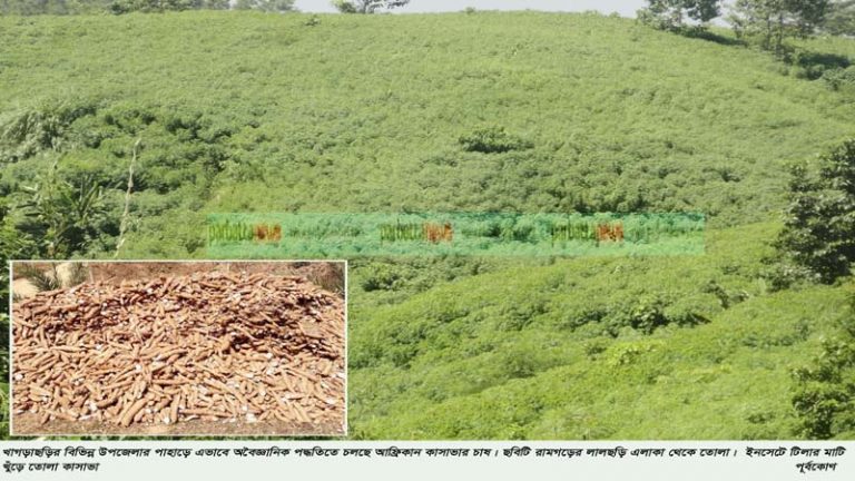 পার্বত্য চট্টগ্রামে দিন দিন সম্প্রসারিত হচ্ছে আফ্রিকার কৃষিজ ফসল কাসাভা চাষ। অবৈজ্ঞানিক পদ্ধতিতে চাষাবাদ করায় ধস ও মাটি ক্ষয়ে উর্বরতা হারাচ্ছে শত শত পাহাড়ি টিলা।