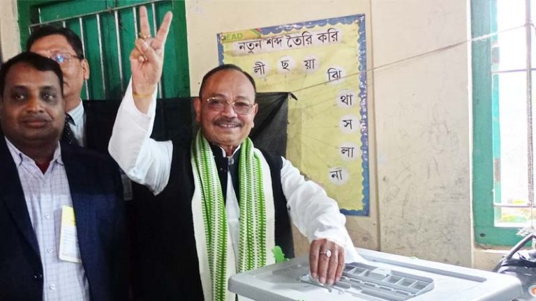 খাগড়াছড়ি নিজ কেন্দ্রে ভোট দিলেন নৌকা প্রার্থী কুজেন্দ্র লাল ত্রিপুরা