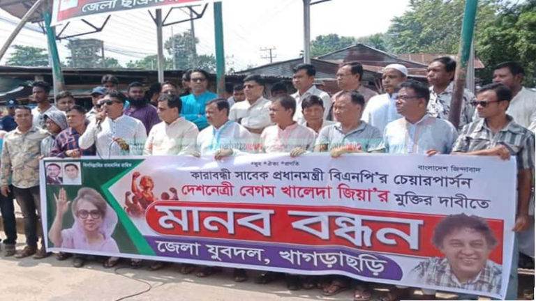 খালেদা জিয়ার মুক্তির দাবিতে খাগড়াছড়িতে যুবদলের মানববন্ধন