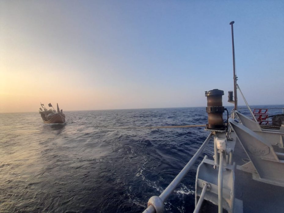 অন্যদিকে নৌবাহিনী জাহাজ “অনুসন্ধান” গভীর সমুদ্রে জরিপ কাজে নিয়োজিত থাকাকালে গত ৪ জানুয়ারি ভাসমান অবস্থায় উক্ত বোটটির অবস্থান সনাক্ত করে। পরে দ্রুততম সময়ে নৌবাহিনী জাহাজ ঘটনাস্থলে পৌঁছে বোটটিকে জেলেসহ উদ্ধার করে।