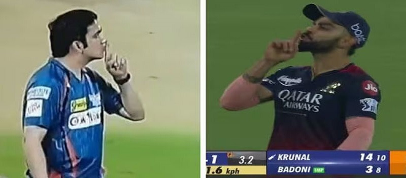 তবে নেটিজেনদের সবথেকে বেশি নজর কেড়েছে বিরাটের ওই মুখে আঙুল দেওয়া সেলিব্রেশন। কারণ প্রথম লেগের ম্যাচে আরসিবিকে শেষ বলে ১ উইকেটে হারানোর পর ঠিক এভাবেই মুখে আঙুল দিয়ে চিন্নস্বামীর গ্যালারির দিকে ইঙ্গিত করেছিলেন লখনৌর হেড কোচ গম্ভীর।