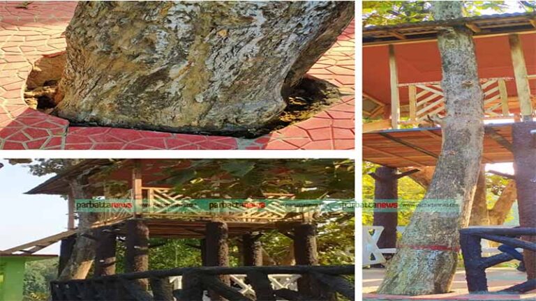 পাহাড়ে রাস্তাঘাট উন্নয়ন করতেও অনেক জায়গায় কাটা পড়ছে লক্ষ লক্ষ গাছ। কিন্তু নাইক্ষ্যংছড়ি উপবন পর্যটন কেন্দ্রে চলমান উন্নয়নে দেখা গেছে তার ভিন্ন চিত্র। অন্তত ৩০ বছর বয়সী এই গাছটিকে বাঁচানোর দৃশ্য নজর কেড়েছে পর্যটকদের।