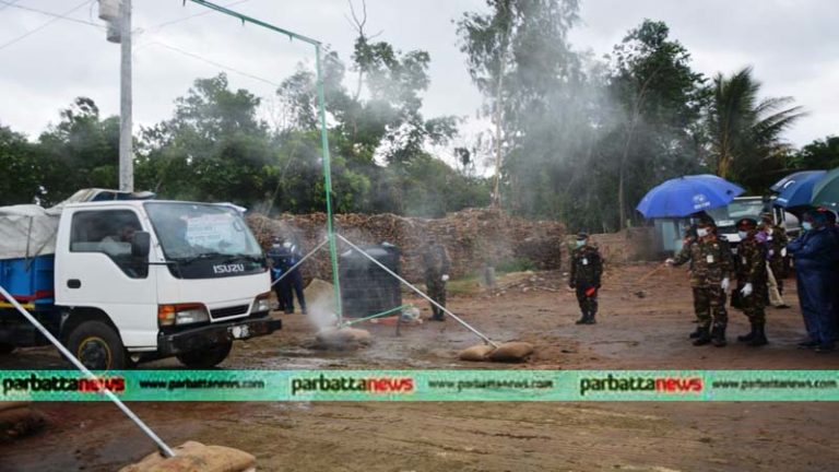 কক্সবাজারে জরুরি প্রয়োজনে প্রবেশ করা গাড়ি জীবাণুমুক্ত করছেন সেনাবাহিনী