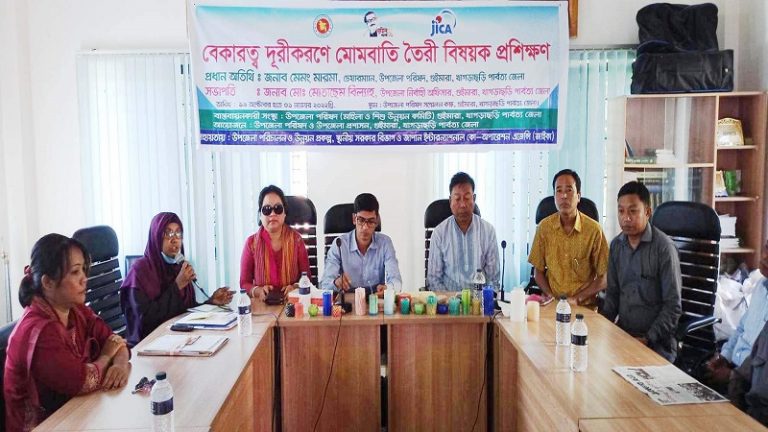 খাগড়াছড়ি জেলার গুইমারা উপজেলা পরিষদের আয়োজনে উপজেলা পরিচালন ও উন্নয়ন প্রকল্প, স্থানীয় সরকার বিভাগ ও জাইকা’র সহায়তায় বেকারত্ব দূরীকরণে মোমবাতি তৈরি বিষয়ক প্রশিক্ষণ বাস্তবায়ন করেছেন গুইমারা উপজেলা পরিষদের মহিলা ও শিশু উন্নয়ন কমিটি।