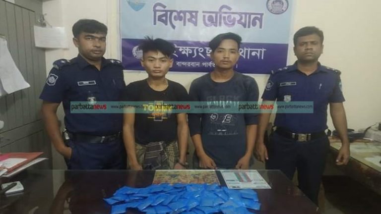 আটককৃতরা হলেন, ঘুমধুমের বাইশফাঁড়ি গ্রামের ক্যাচাচিং তঞ্চঙ্গা ছেলে উথোই মং তঞ্চঙ্গা (১৯) ও মংচাচিং তঞ্চঙ্গার ছেলে রাজু তঞ্চঙ্গা (১৫)।