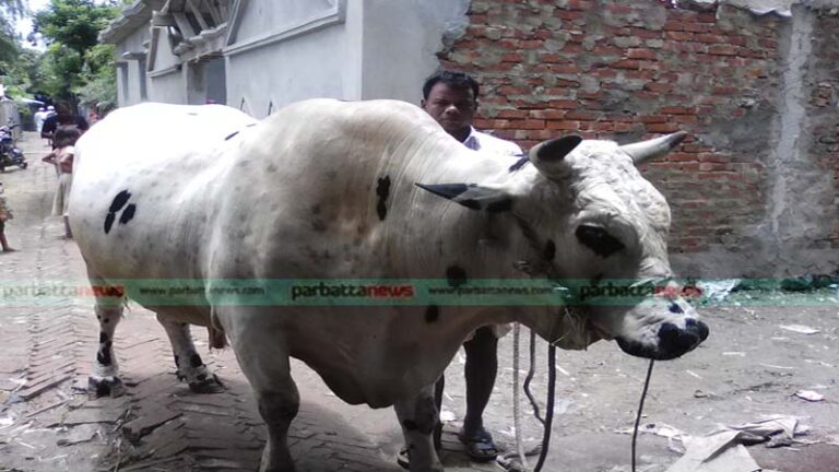 তিনি আরও বলেন, গত কোরবানির ঈদে গরুটিকে বাজারে উঠানো হয়েছিল। তখন গরুটির ওজন ছিল প্রায় ২৫ মণ। আশানুরূপ দাম না পাওয়ায় গত বছর ষাঁড়টি বিক্রি করিনি।