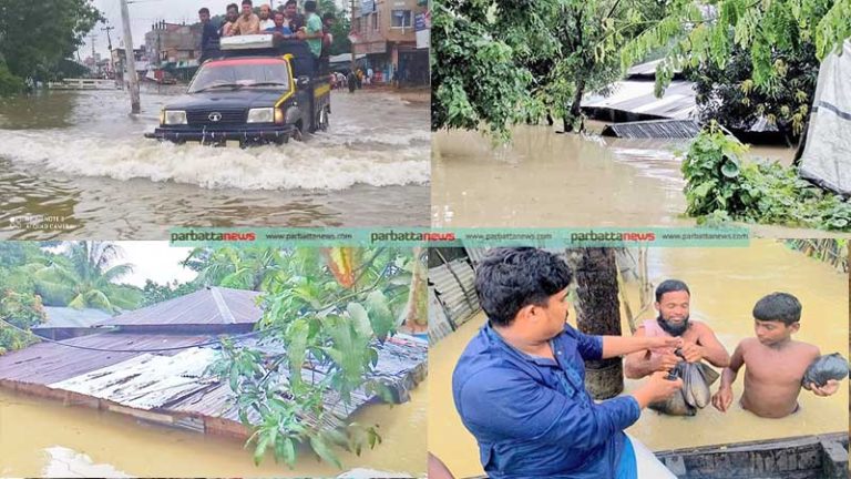 এদিকে, গত পরশুদিন পৌরসভার কয়েকটি ওয়ার্ডে বন্যার পানি ডুকলেও সোমবার রাত থেকে ৯টি ওয়ার্ডে পুরোপুরি বন্যার পানির নিচে তলিয়ে গেছে। ৮ ও ৯ নম্বর ওয়ার্ডের