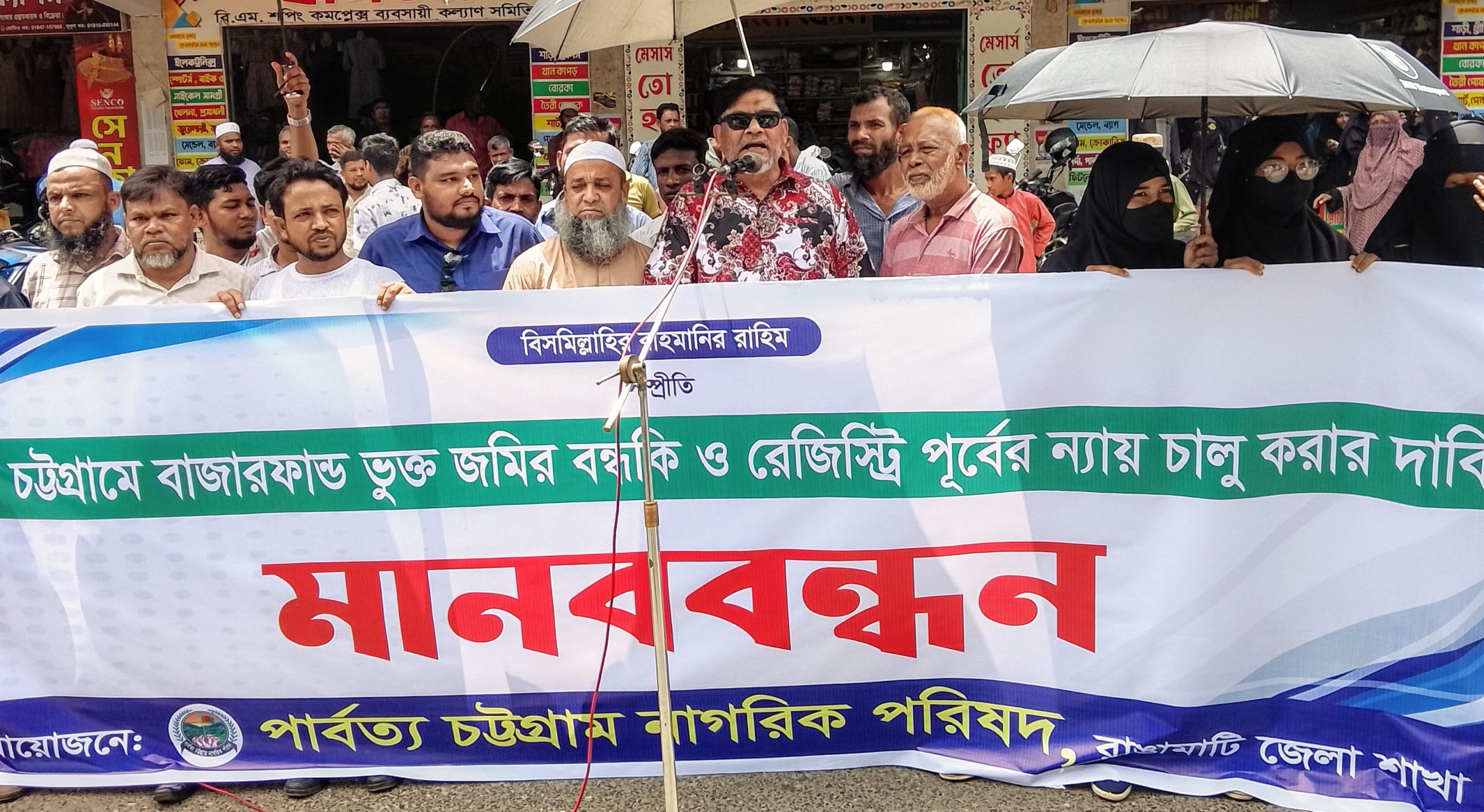 পার্বত্য চট্টগ্রামে বাজারফান্ড ভুক্ত জমির বন্ধকি ও রেজিস্ট্রি কার্যক্রম পূর্বের ন্যায় চালু করার দাবিতে রাঙামাটিতে মানববন্ধন করেছে পার্বত্য চট্টগ্রাম নাগরিক পরিষদ