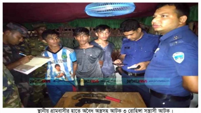 টেকনাফের হ্নীলায় অস্ত্রসহ তিন রোহিঙ্গা আটক