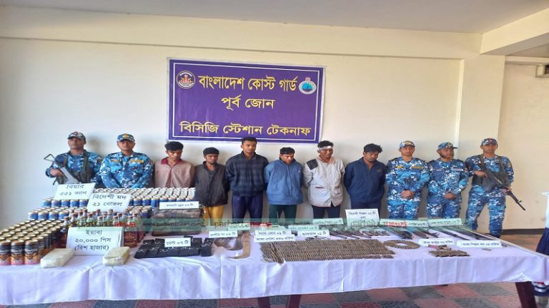 কক্সবাজারের টেকনাফে অভিযান চালিয়ে বিপুল পরিমাণ আগ্নেয়াস্ত্র ও মাদকসহ ৬ সশস্ত্র রোহিঙ্গা সন্ত্রসীকে আটক করেছে কোস্ট গার্ড।