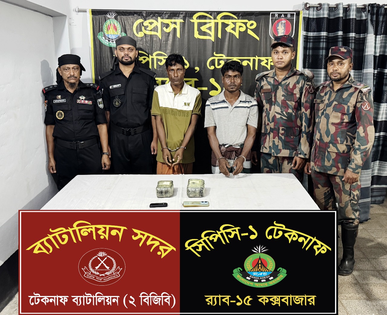 টেকনাফে বিজিবি ও র্যাবের সাঁড়াশি অভিযানে ইয়াবাসহ দুই পাচারকারী আটক