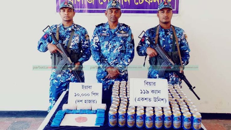টেকনাফে ১০ হাজার পিস ইয়াবা ও ১১৯ ক্যান বিয়ার জব্দ করেছে বাংলাদেশ কোস্ট গার্ড।