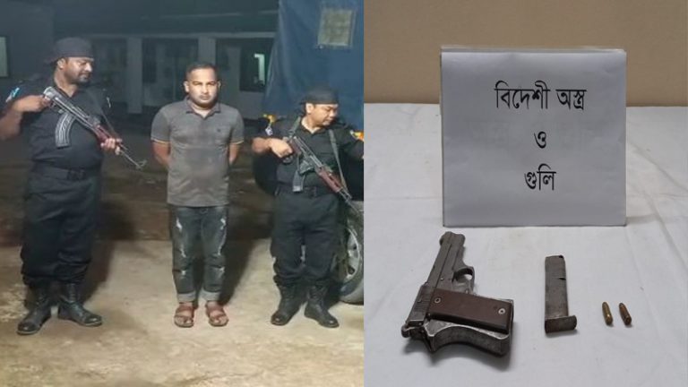সোমবার (২৭ জুন) রাত সাড়ে ১০ টায় র্যাপিড একশন ব্যাটালিয়ন (র্যাব)- ১৫ সহকারী পরিচালক ( ল ‘ এন্ড মিডিয়া ) সহকারী পুলিশ সুপার মো. বিল্লাল উদ্দিন জানান, রবিবার দিনগত রাত ১১ টার দিকে গোপন সংবাদ পেয়ে র্যাপিড একশন ব্যাটালিয়ন ( র্যাব )- ১৫ জাদিমুড়া বাজার এলাকায় অভিযান চালিয়ে পুতিয়া ডাকাতকে আটক করে । এসময় তার দেহ তল্লাশি করে ১ টি বিদেশি পিস্তল, ২ রাউন্ড গুলি ও ১ টি ম্যাগাজিন পাওয়া যায় ।