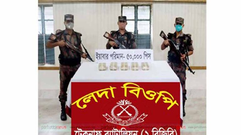 পরে ভোররাতে নাইট ভিশন ডিভাইস দ্বারা কয়েকজন ব্যক্তিকে ছ্যুরিখাল সংলগ্ন লবণের মাঠ দিয়ে প্রবেশ করতে দেখে। তখনই টহলদল অবৈধ অনুপ্রবেশকারীদের ধরার জন্য চ্যালেঞ্জ করে। কিন্তু বিজিবি টহলদলের উপস্থিতি টের পেয়ে দ্রুত অনুপ্রবেশকারীরা পালিয়ে যায়। এরপর টহলদল লবণ মাঠ শনিবার (২৪ অক্টোবর) ভোররাতে তল্লাসি করে অবৈধ অনুপ্রবেশকারীদের ফেলে যাওয়া একটি পলিথিনের ব্যাগ জব্দ করে। জব্দ করা ব্যাগের ভেতর ৫০ হাজার পিস ইয়াবা পাওয়া যায়।