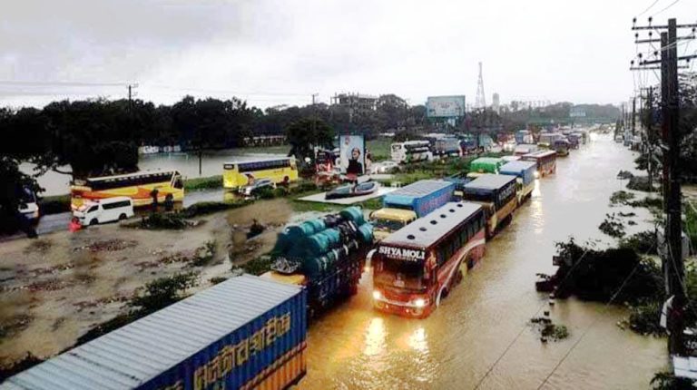 ঢাকা-চট্টগ্রাম মহাসড়কে হাঁটুপানি, তীব্র যানজট