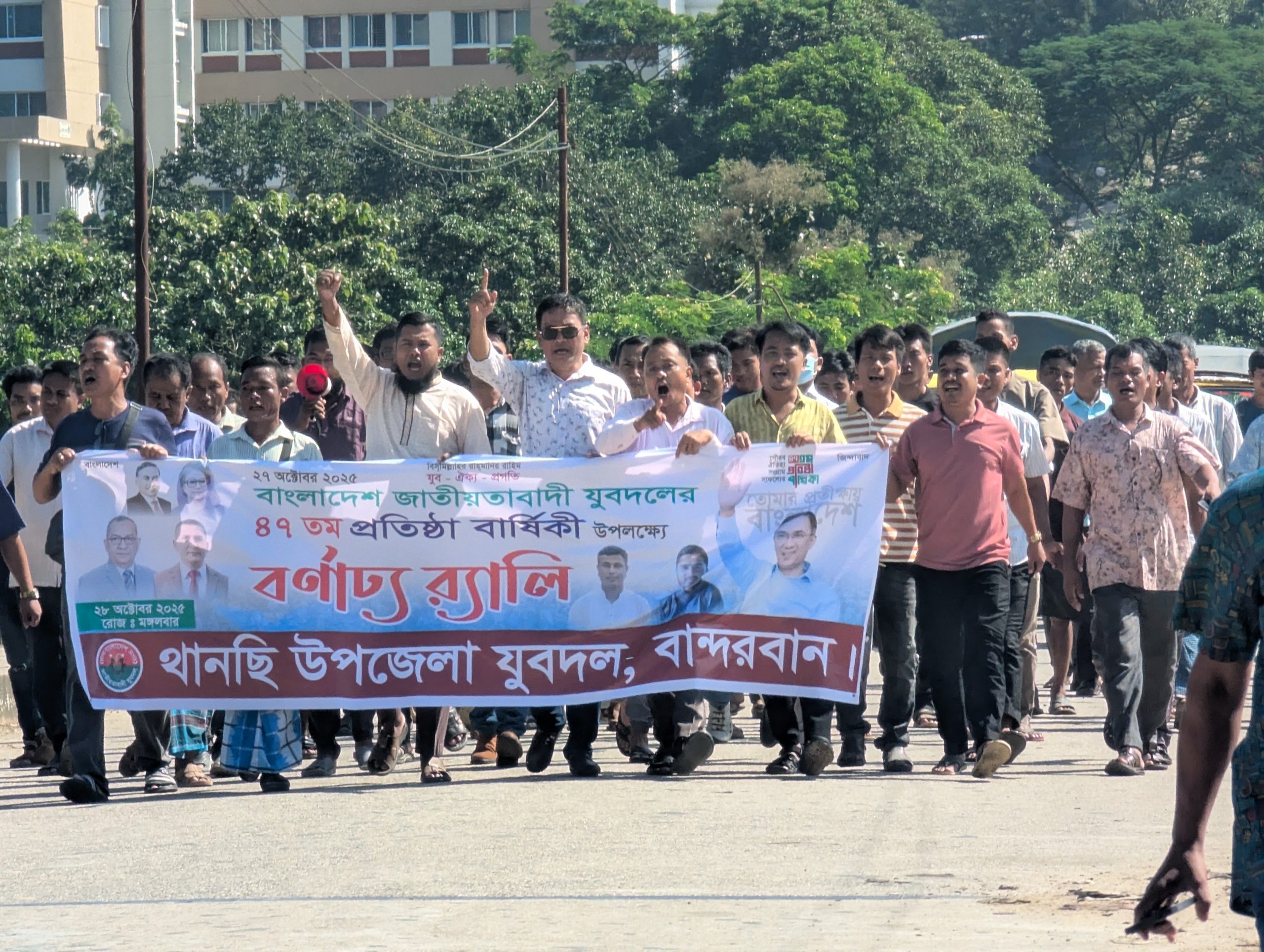 বান্দরবানের থানচি উপজেলায় নানা আয়োজনের মধ্য দিয়ে জাতীয়তাবাদী যুবদলের ৪৭তম প্রতিষ্ঠাবার্ষিকী উদযাপন করা হয়েছে। এ উপলক্ষে বর্ণাঢ্য শোভাযাত্রা ও পথসভা অনুষ্ঠিত হয়।