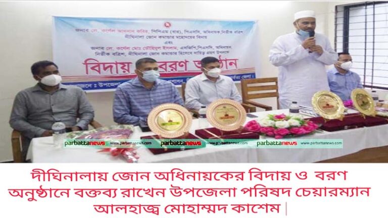 আলোচনা সভার পর বিদায়ী জোন অধিনায়ক লেফটেন্যান্ট কর্নেল আদনান কবির পিপিএম (বার) পিএসসি, নবাগত জোন অধিনায়ক লেফটেন্যান্ট কর্নেল তৌহিদুল ইসলাম এসজিপি, পিএসসি এর হাতে সম্মাননা স্বারক তুলে দেন, উপজেলা পরিষদ চেয়ারম্যান আলহাজ্ব মোহাম্মদ কাশেম এবং উপজেলা নির্বাহী কর্মকর্তা মোহাম্মদ উল্লাহ।