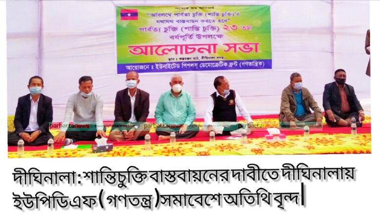 ২ডিসেম্বর (বুধবার) সকালে দীঘিনালা উপজেলার কল্পরঞ্জন মাঠে সমাবেশের আয়োজন করে, ইউনাইটেড পিপলস ডেমোক্রেটিক ফ্রন্ট (গনতান্ত্রিক)।