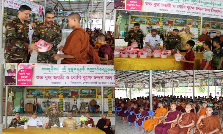 এসময় মেজর মো. শায়েখ-উজ-জামান (জিএসও-২ ইন্টঃ), রাজগুরু বৌদ্ধ বিহারের বিহার অধ্যক্ষ ড: সুবন্নলংকারা মাহাথেরো, বিহার পরিচালনা কমিটির সভাপতি চহ্লাপ্রু জিমিসহ আরো অনেকে উপস্থিত ছিলেন ।