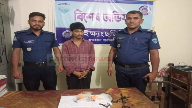 বান্দরবানের নাইক্ষ্যংছড়ি উপজেলার ঘুমধুম ইউনিয়ন টিভি টাওয়ার এলাকা থেকে ৯৫০ পিস ইয়াবা ট্যাবলেটসহ এক মাদক পাচারকারীকে আটক করেছে ঘুমধুম তদন্ত কেন্দ্রের পুলিশ।