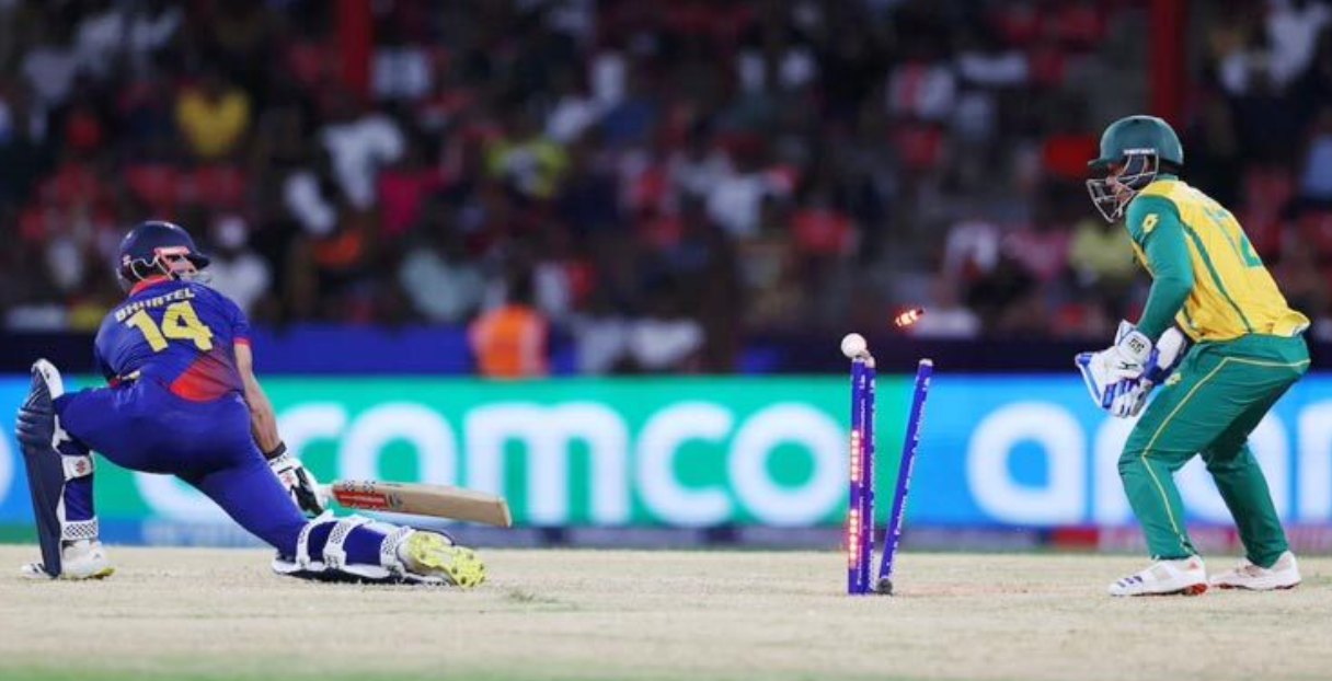 এবারের যুক্তরাষ্ট্র এবং ওয়েস্ট ইন্ডিজ বিশ্বকাপ চিরস্মরণীয় হয়ে থাকবে ক্রিকেটপ্রেমীদের কাছে। কারণ টি-টোয়েন্টিতে বড় দল বলতে যে কিছুই নেই, যে কারও দিনে যে কেউ জিতে যেতে পারে, সেটা প্রমাণ হলো আরও একবার। এই যেমন আজ আইসিসি সহযোগী দেশ পুঁচকে নেপালের কাছে হারতে বসে শেষ মুহূর্তে মাত্র ১ রানে জিতলো। হেরেও যেতে পারতো আজ দক্ষিণ আফ্রিকার মত ক্রিকেট পরাশক্তিও।