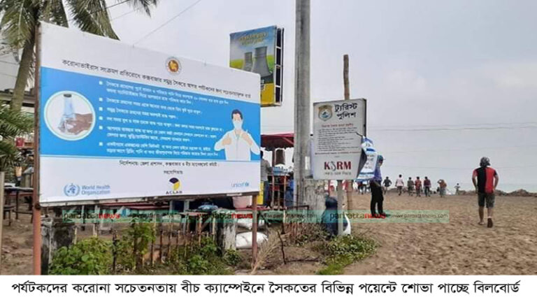 পর্যটকদের করোনা সচেতনতায় বিচ ক্যাম্পেইন