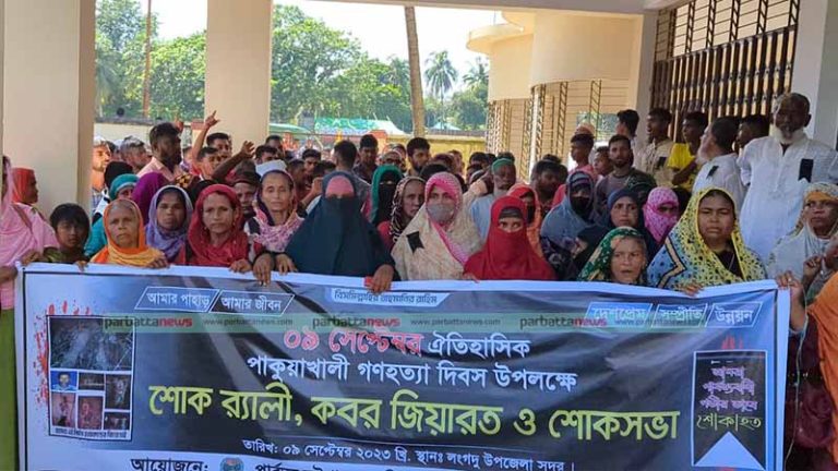 শনিবার (৯ সেপ্টেম্বর) দুপুরে লংগদু উপজেলা সদরে শোক র্যালি করে প্রধান সড়ক ঘুরে এসে মাঠে পাকুয়াখালীতে নিহত গণ কবরের সামনে দোয়া, মুনাজাত ও শোকসভা অনুষ্ঠিত হয়।