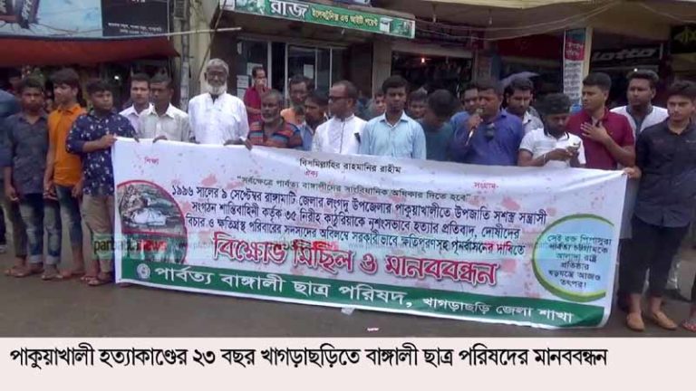 পাকুয়াখালী হত্যাকান্ডের ২৩ বছর: খাগড়াছড়িতে বাঙ্গালি ছাত্র পরিষদের বিক্ষোভ