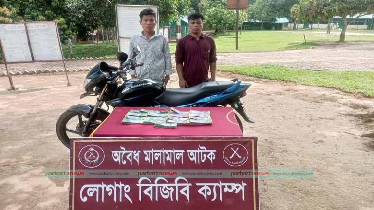 পানছড়ি ব্যাটালিয়ন (৩ বিজিবি) জানায়, রবিবার (২৪ সেপ্টেম্বর) সকাল সাড়ে ১০টার দিকে লোগাং বিজিবি ক্যাম্পের চেক পোস্টে ডিউটিরতরা একটি রেজিস্ট্রেশন বিহীন মোটর সাইকেলযোগে আসা দুই আরোহীকে সন্দেহজনক মনে হলে তাদের তল্লাশি করে। এসময় তাদের হেফাজতে থাকা একটি বস্তায় সাড়ে বারো লাখ টাকা পাওয়া যায়। এই টাকার উৎস ও মালিকানা সম্পর্কে তারা কোন তথ্য দিতে না পারায় তাদের আটক করা হয়। এসময় ১নং লোগাং ইউপির ৬নং ওয়ার্ডের সদস্য রিপন চাকমা, ২নং ওয়ার্ড সদস্য ও কার্বারি পূর্ণ জীবন চাকমা ও ৪নং ওয়ার্ড সদস্য সাহেব আলীর উপস্থিতিতে বস্তা খুলে টাকাগুলো গণনা করা হয় । যার জব্দ তালিকায় ইউপি সদস্য ও আসামীদ্বয় স্বাক্ষর করেছে।
