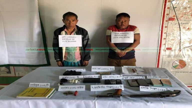 পানছড়িতে অস্ত্রসহ ইউপিডিএফ’র ২ চাঁদাবাজ আটক