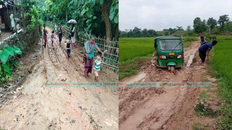 পানছড়িতে স্বেচ্ছাশ্রমে নির্মিত রাস্তায় হাঁটু সমান কাদা