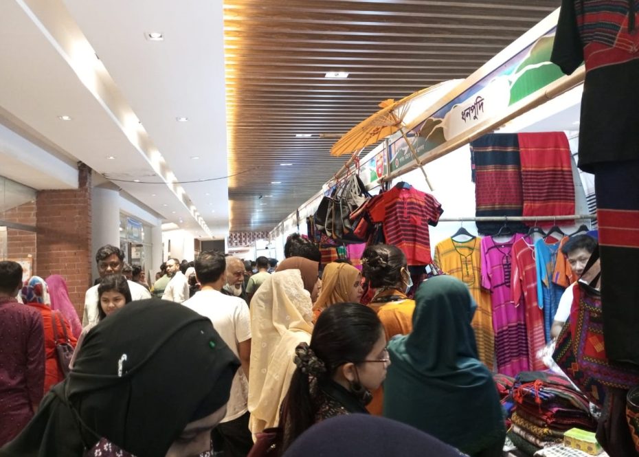 এদিকে মেলায় পার্বত্য জেলা খাগড়াছড়ি থেকে আনা জুমের সবজি বিক্রি করছে হিলস বাজার। হিলস বাজারের মালিক রনো চাকমা জানান, মেলায় বেচাকেনা কম। তবে আজ সন্ধ্যায় বেচাকেনা ভালো হবে আশা করছেন তিনি।