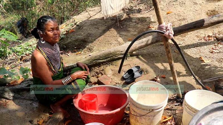 তীব্র তাপদাহের ফলে পানির সংকট দেখা দিয়েছে পুরো পাহাড় জুড়ে। পার্বত্য জেলা বান্দরবানের দুর্গম পাহাড়ে বসবাসকারীদের পানির প্রধান উৎস নদী ও ঝিরি-ঝর্ণা। কিন্তু শুষ্ক মৌসুমে ঝিরি-ঝর্ণার পানি শুকিয়ে যাওয়ায় দুর্গম এলাকায় বিশুদ্ধ পানির তীব্র সংকট দেখা দিয়েছে।
