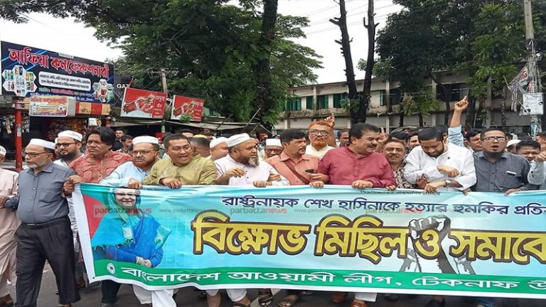 প্রধানমন্ত্রীকে হত্যার হুমকির প্রতিবাদে টেকনাফে বিক্ষোভ মিছিল