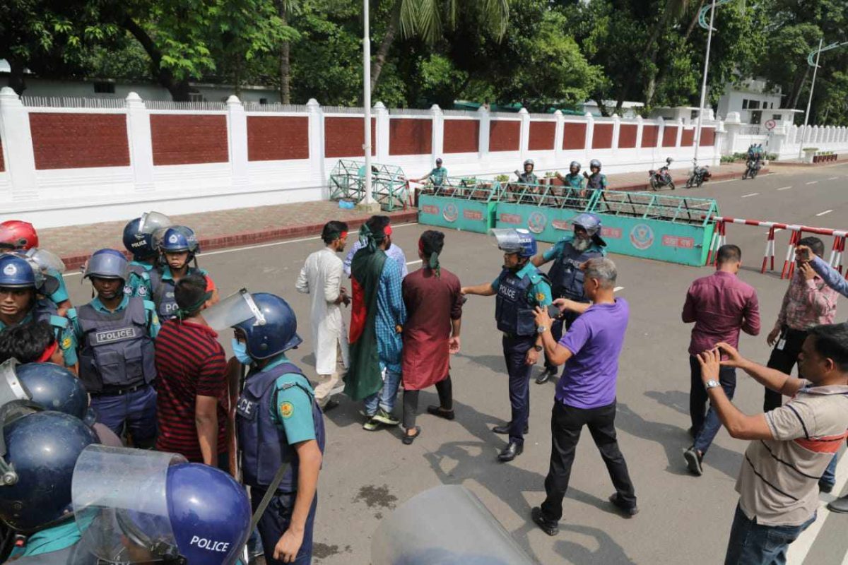 এর আগে দুপুরে রাষ্ট্রপতিকে স্মারকলিপি দিতে যাওয়া শিক্ষার্থীদের গণপদযাত্রা জিরো পয়েন্টে আটকে দেয় পুলিশ। তবে সেই ব্যারিকেড ভেঙে বঙ্গভবনের দিকে চলে যান শিক্ষার্থীদের একাংশ। এরপর বঙ্গবন্ধু অ্যাভিনিউতে তাদের আটকে দেয় পুলিশ। সেখানে পুলিশ ও শিক্ষার্থীরা মুখোমুখি অবস্থান নেন।